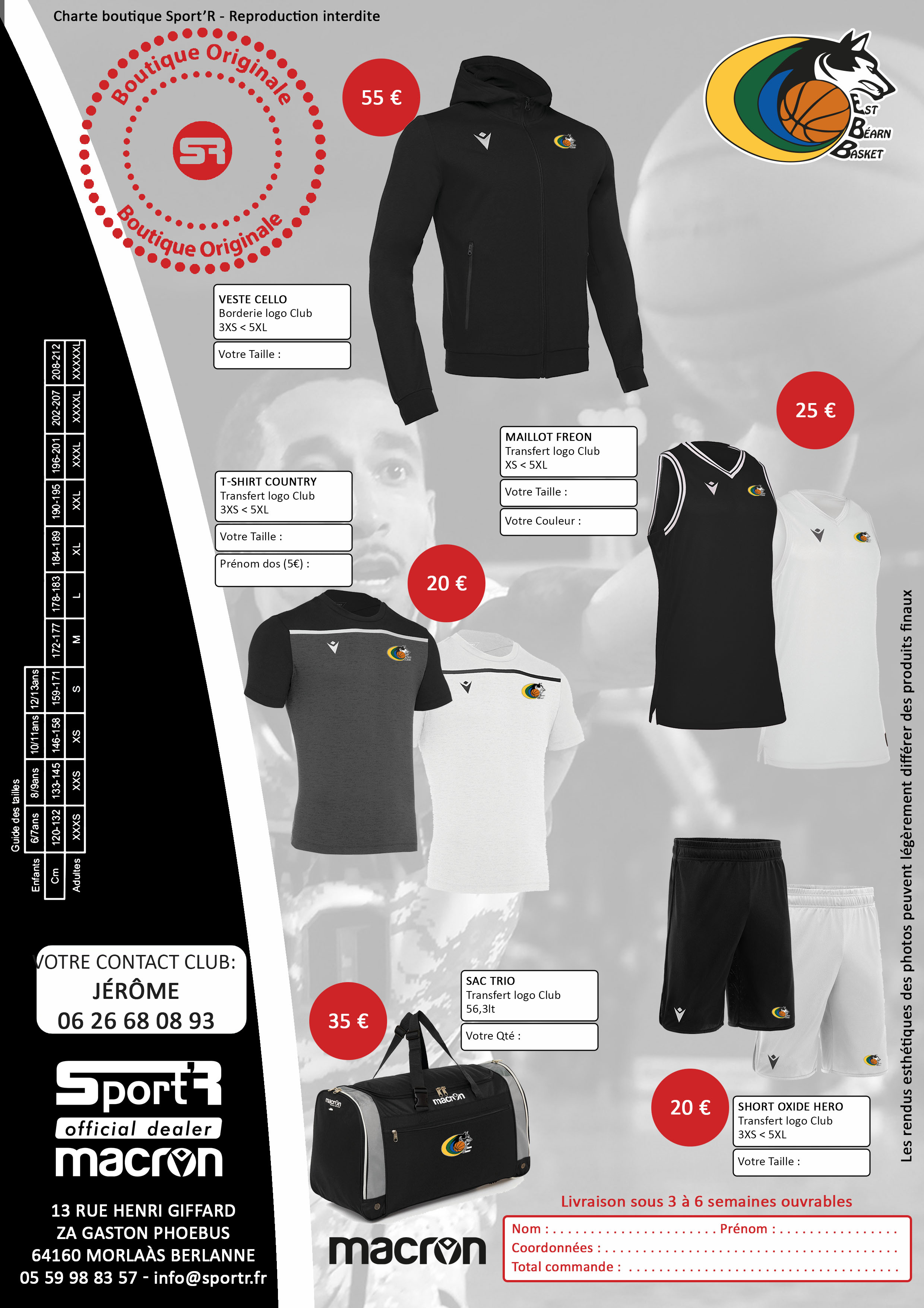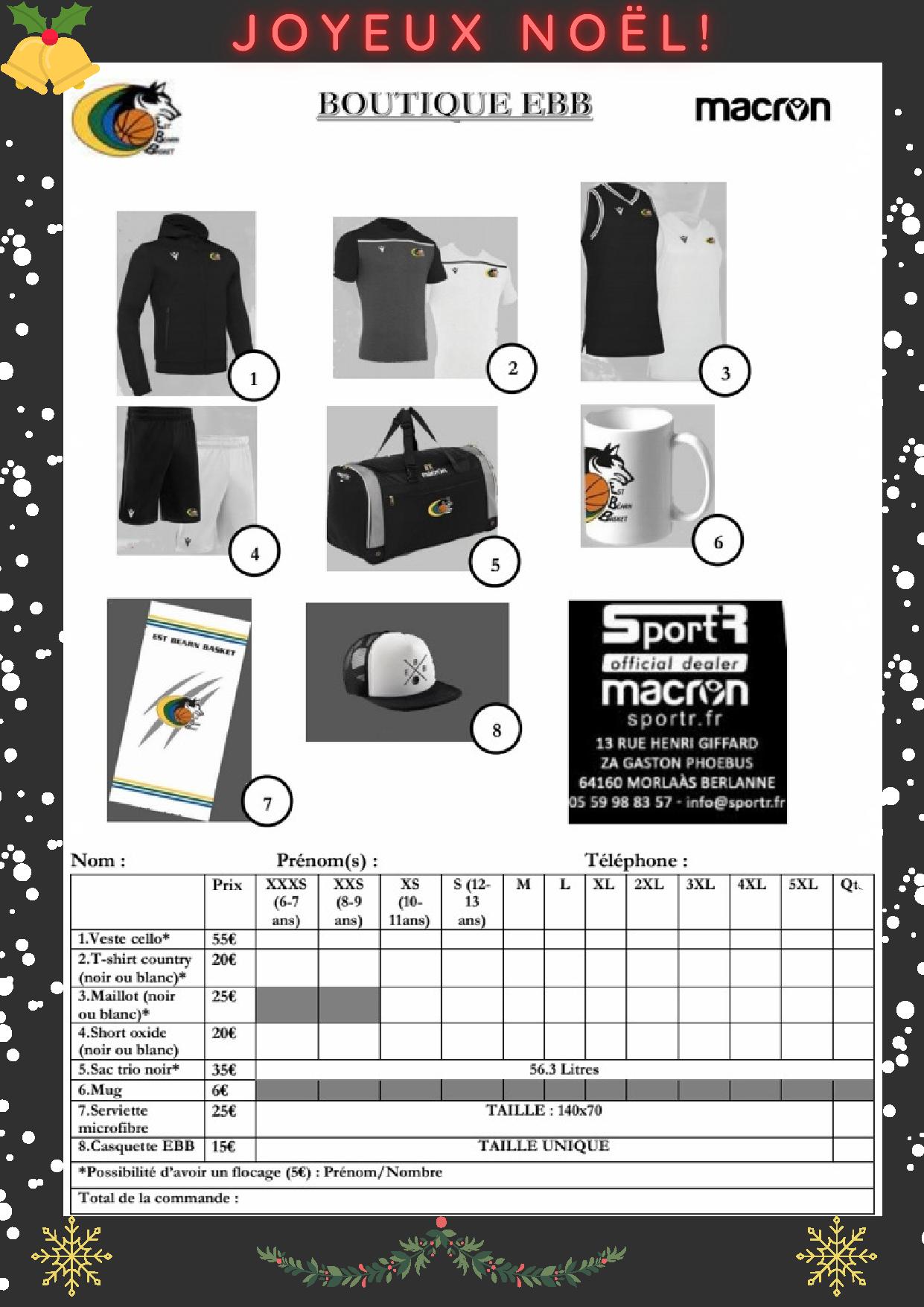 Deuxième solution, une très belle innovation de notre équipementier Macron. Il propose une action inédite sur son son site internet avec vente en ligne et livraison avant Noël de 9 produits différents de ceux de notre boutique avec le logo de notre club. Cette action permet de soutenir notre club et notre équipementier de proximité.
