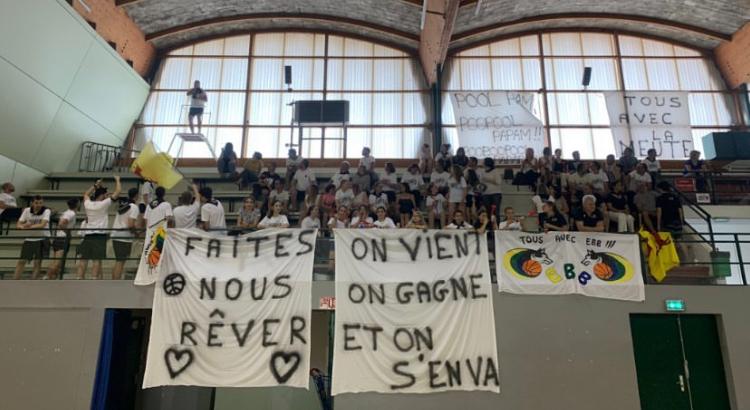 Début du quatrième quart temps, EBB revient grâce à une défense rude. Les deux équipes sont au coude à coude. A chaque point marqué répond à un point concédé dans ce long, très long money time.