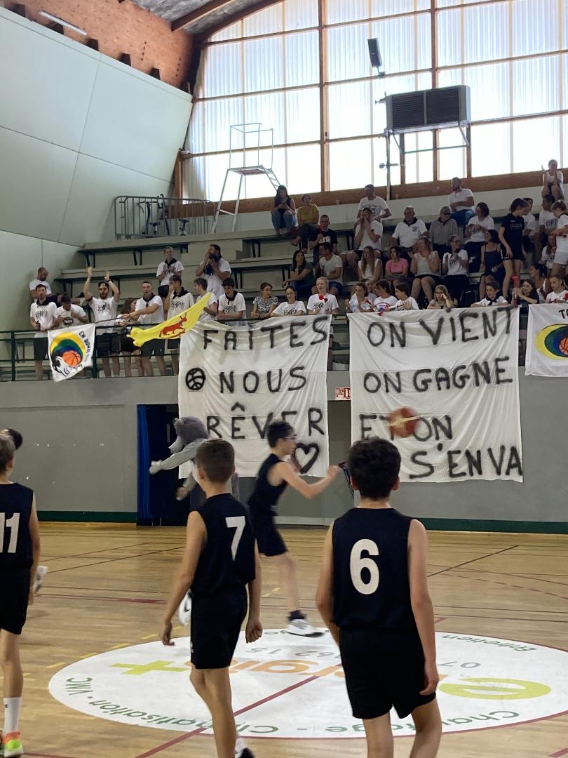 « On est à un quart temps de la Finale ! Qu’est ce qu’on fait ?! » Tout le monde répond « on Gagne ! »