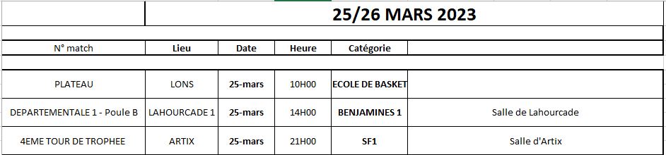 PROGRAMME DU WEEK-END 25/26 MARS